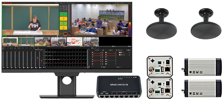 讲台区全景与跟踪:4K云镜AI智能跟踪摄像机,四线合一透传,提供讲台4K全景、教师跟踪高清特写双画面 讲台区全景与跟踪:4K云镜AI智能跟踪摄像机,四线合一透传,提供学生区4K全景、学生起立跟踪高清特写双画面 讲台与学生区拾音:两台“非接触型等声阵列麦克风”,型号:TF-AM80 互动增选设备:需要互动授课时,需增加一台“回声处理全向麦克风”,型号:TF-AM90