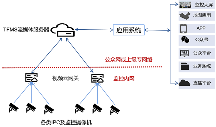 配套视频网关,实现监控视频转码,常用于跨网监控、漫直播、景区直播等