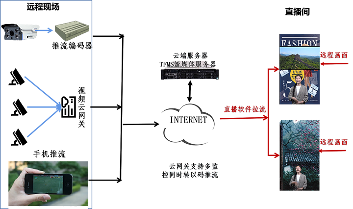 远程现场画面接入直播间互动,用于绿幕抠像背景、直播画面拼接